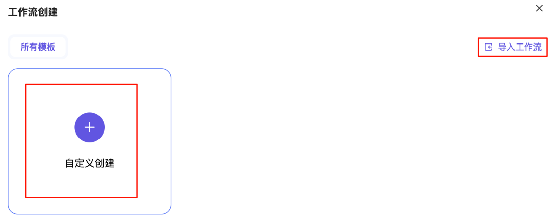 点击『工作流创建』后,可以选择自定义创建,也可以导入我创作好的工作流直接使用。