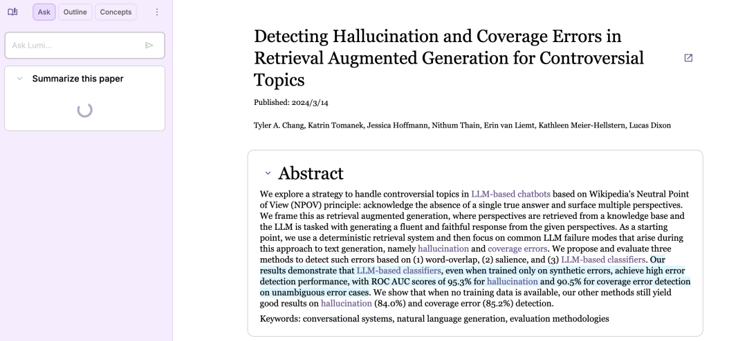 谷歌旗下 PAIR 团队最近开源了一款神器:Lumi,一款专为 arXiv 论文阅读打造的 AI 智能阅读助手。