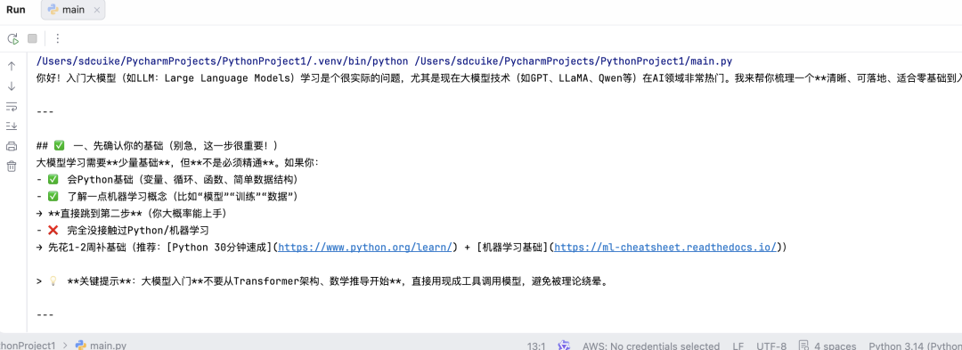 message = {'role': 'user', 'content': '你好,如何入门大模型学习'}