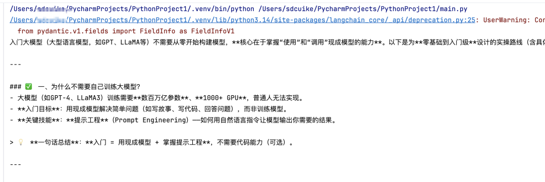 你需要安装 LangChain 的核心库以及专门用于连接 Ollama 的社区库。