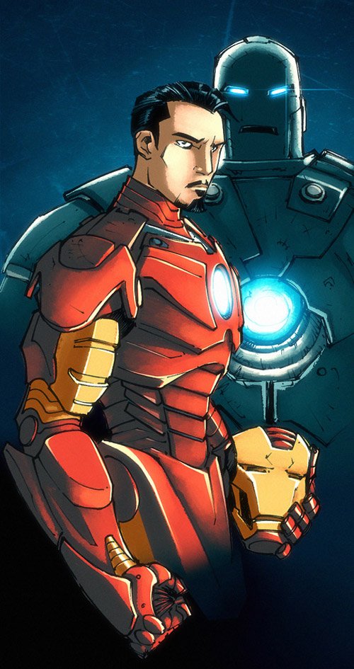 8. 托尼装甲红色主体部分:填充#e03020,描边黑。