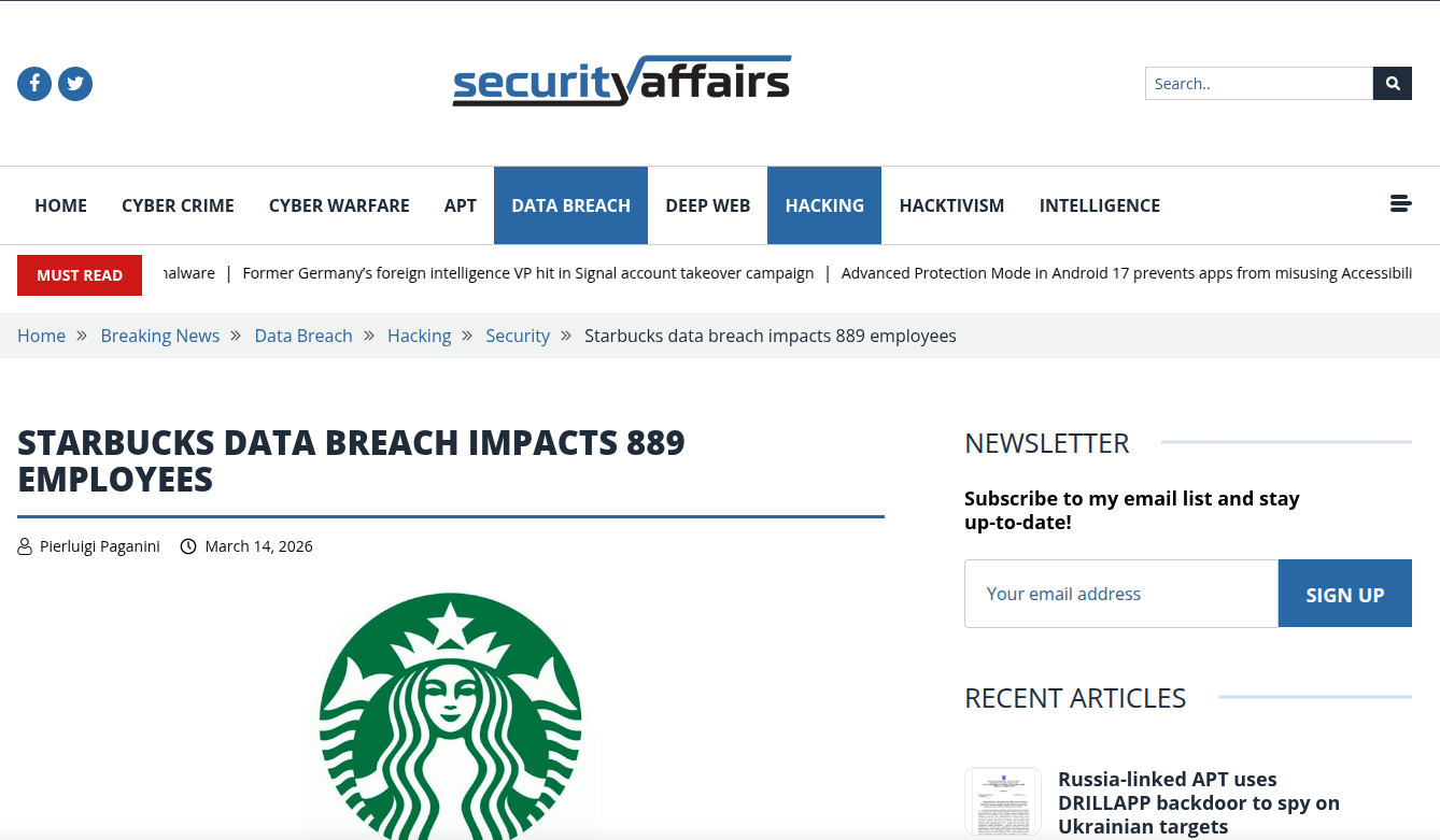 在数字化转型的浪潮下,大型企业积累了海量的用户与员工数据,这些数据资产既是商业价值的核心,也是网络犯罪分子觊觎的首要目标。近年来,数据泄露事件的频发不仅造成了巨大的经济损失,更严重侵蚀了公众对企业的信任基石。2026年发生的星巴克数据泄露事件,再次将企业内部安全治理的痛点推向了风口浪尖。据报道,此次泄露影响了889名员工,涉及姓名、联系方式、社保号码(SSN)及其他个人身份信息(PII)。与以往大规模消费者数据泄露不同,本次事件的目标直指企业内部人员,其攻击路径呈现出高度的隐蔽性与针对性。