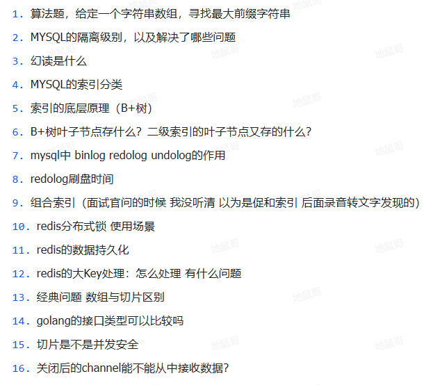 今天分享的是训练营内部学员在杭州滴滴的一面面经详解,下面是整理好的问题: