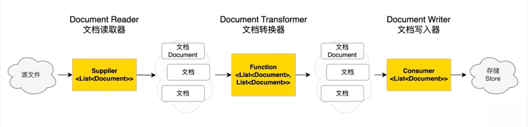 首先,我们要对自己准备好的知识库文档进行处理,然后保存到向量数据库中。这个过程俗称 ETL(抽取、转换、加载),Spring AI 提供了对 ETL 的支持,参考 官方文档。