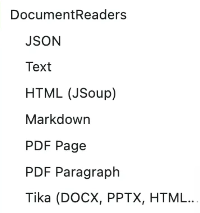 Spring AI 提供了很多种 DocumentReaders,用于加载不同类型的文件。