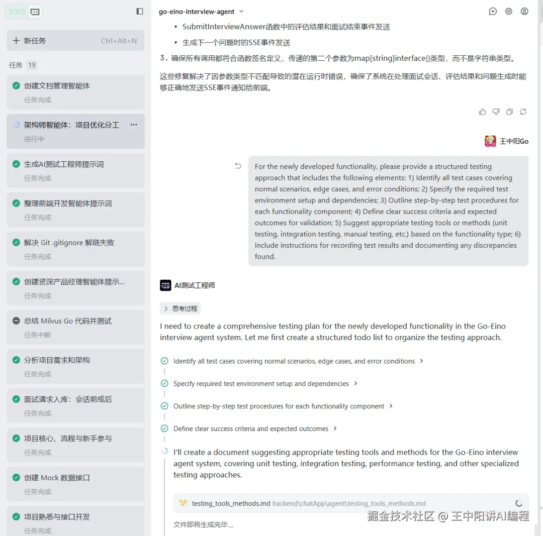 - 实时沟通:建个专属沟通群,开发和前端联调遇到“接口返回格式不对”,直接@架构师和相关智能体,10分钟内响应