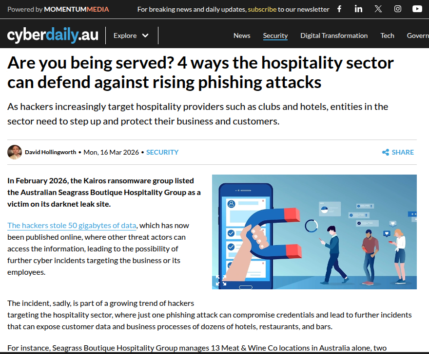 在数字经济时代,酒店与餐饮行业作为服务密集型产业,其运营高度依赖于数字化系统。从客房预订、入住办理到客户关系管理,数据的流动构成了现代酒店业的神经中枢。然而,这种高度的数字化依赖也使其暴露在网络攻击的聚光灯下。2026年2月,Kairos勒索软件集团将澳大利亚Seagrass精品酒店集团列为攻击目标,并在暗网泄露站点公开了窃取的50GB数据。这一事件并非孤例,而是揭示了全球酒店业正面临的一场系统性安全危机。Seagrass集团旗下的Meat & Wine Co、6HEAD及Hunter & Barrel等知名品牌遭受重创,不仅导致敏感客户数据外泄,更引发了连锁反应,使得攻击者可利用这些数据发起二次攻击。