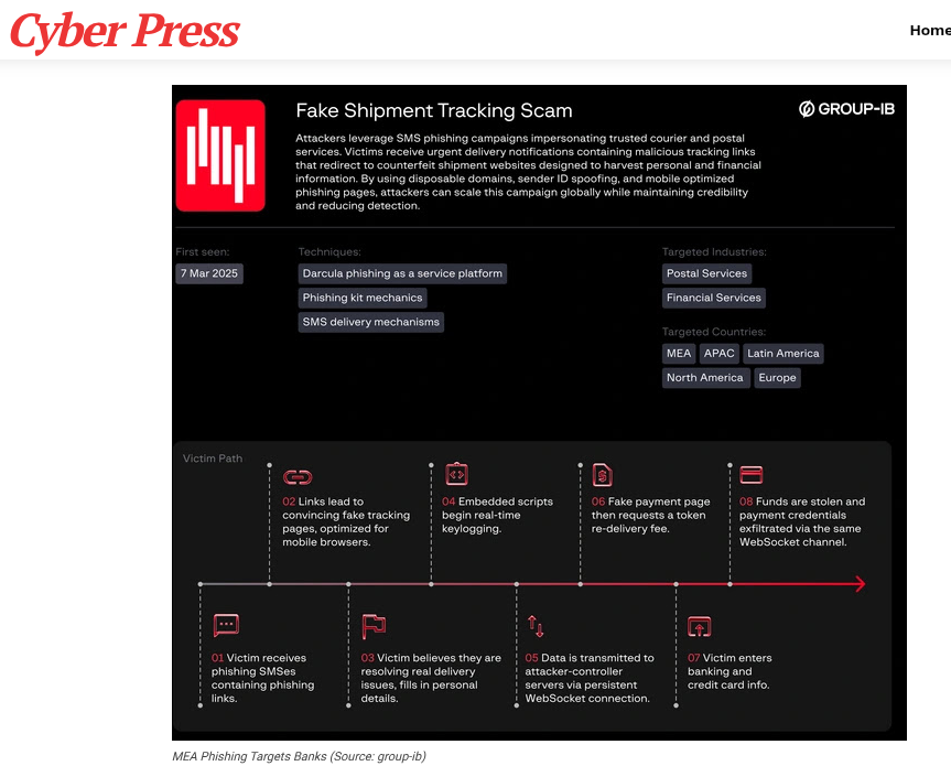 关键词:物流钓鱼;WebSocket实时窃听;MEA地区;Darcula PhaaS;社会工程学;域名欺骗
