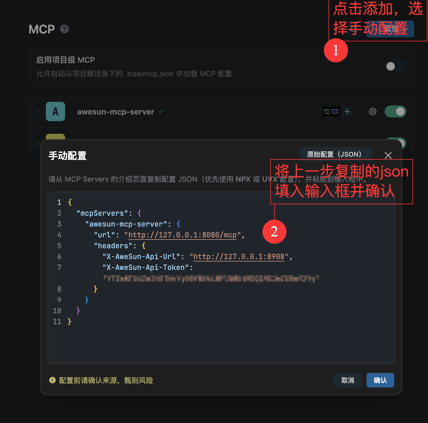 在 TRAE 中配置向日葵 MCP,按下图操作: