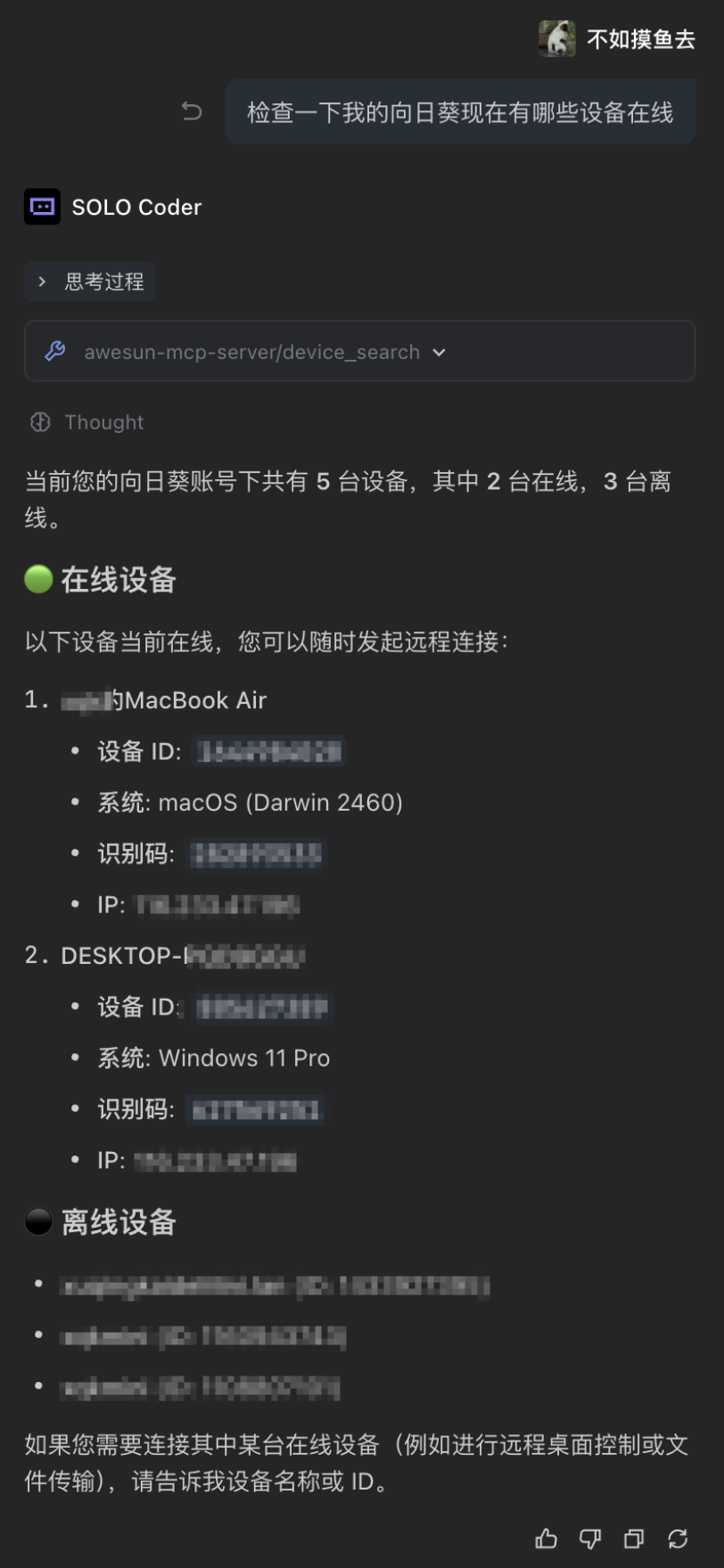 如果我要远程操作另外一台电脑,还能用 AI 吗?这就需要用到远控软件向日葵 MCP 了。
