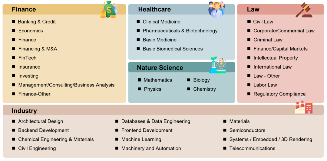 Humanlaya Data Lab招募了来自摩根士丹利、世达律所(Skadden)、协和医院、中国电网、清华大学等顶级机构的100多位资深专家,历时2000多小时,才完成了这套基准的搭建。