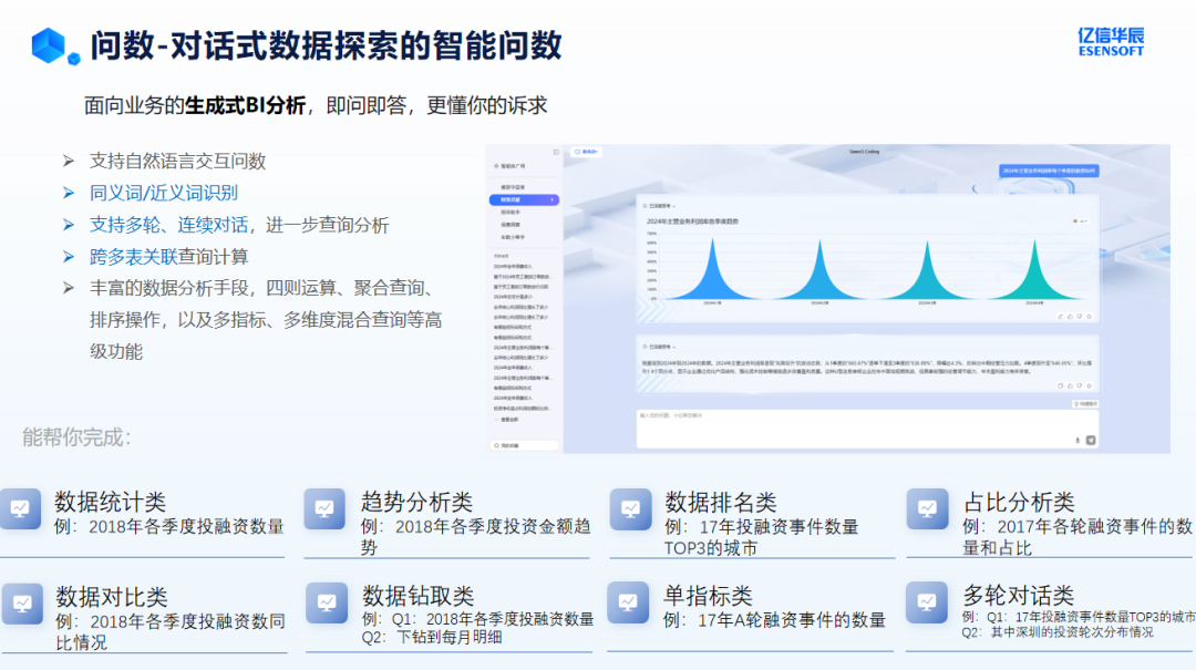 领导说完需求,业务人员打开智问,直接输入:“今年各子公司经营情况,对比去年同期。”——图表实时生成,数据就在眼前。想继续追问“华东区为什么掉了”、“这个数字正常吗”,系统保持上下文,一路问下去,就像在跟一个真正懂业务的分析师对话。没有提需求、没有等排期,也没有那个通宵。