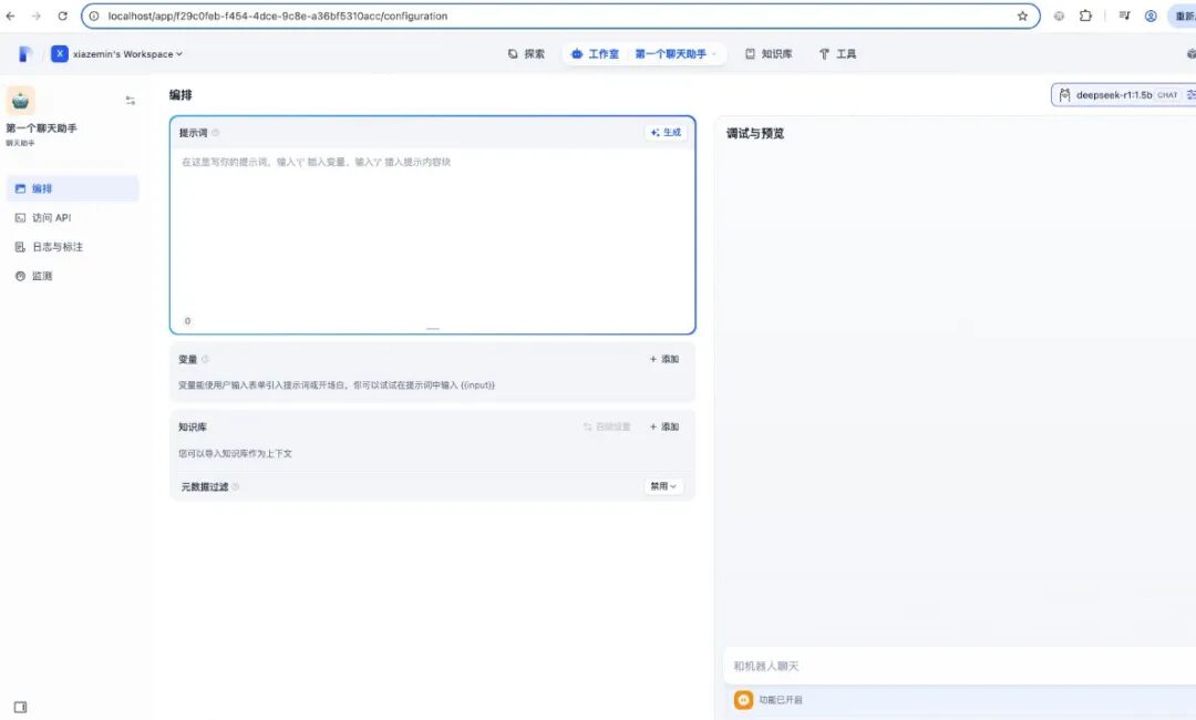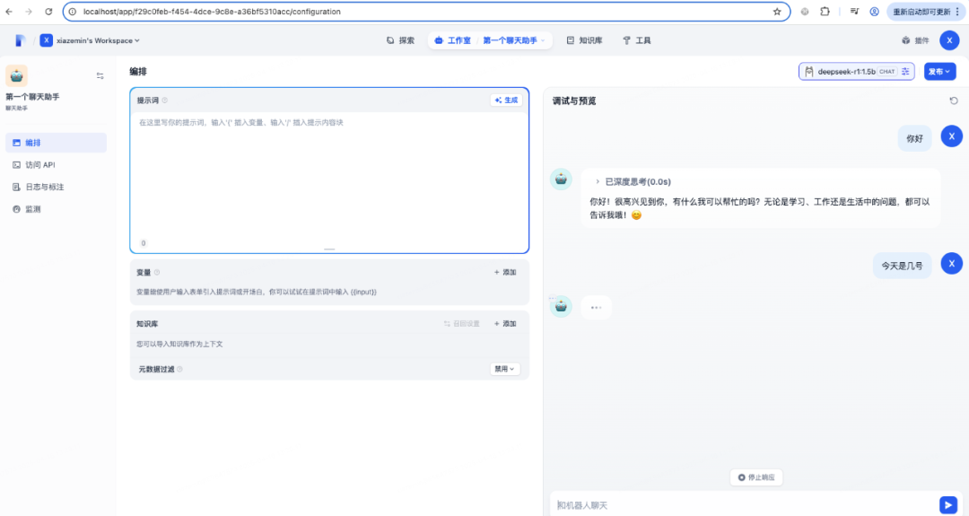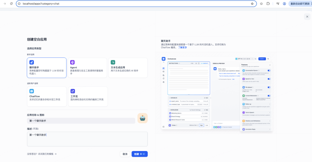 至此模型设置完毕,接着创建一个聊天助手应用: