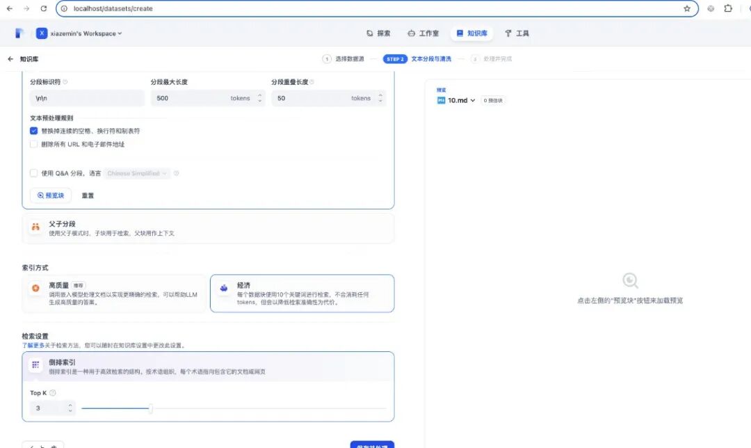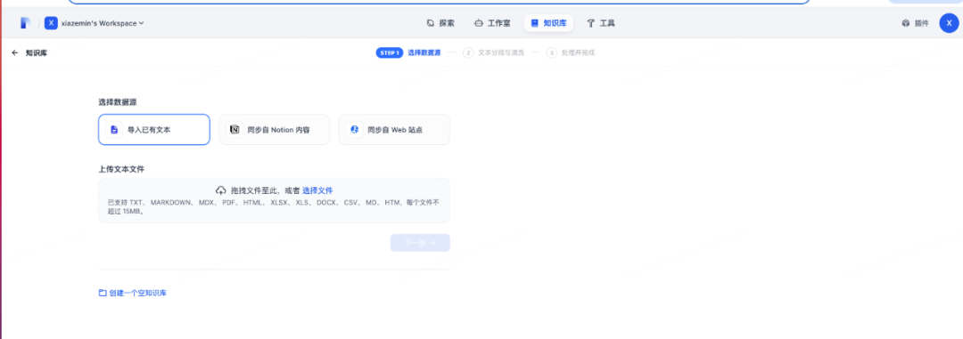 首先创建一个知识库,导入我们准备的文档