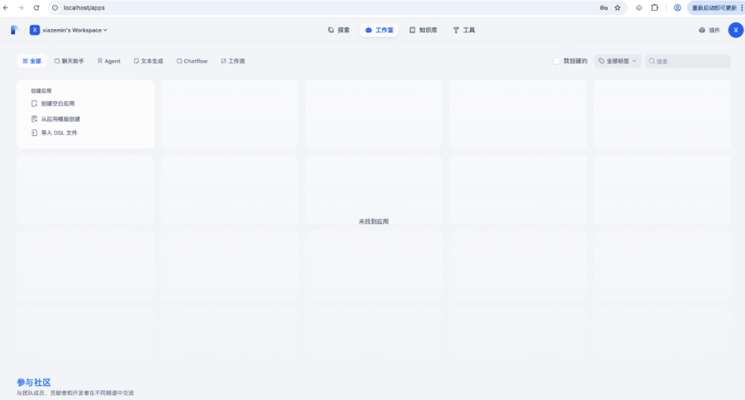 登录进去就可以看到工作室,接着就可以在工作室里创建应用了