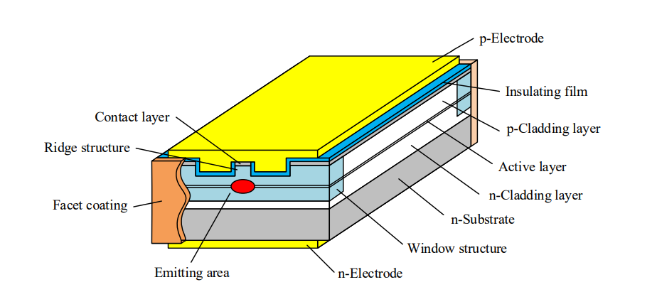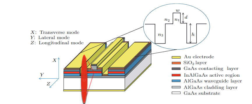 单模激光器因为光斑小,方便光纤耦合,因此ridge一半都比较小,芯片尺寸也会小。比如常用的DFB的尺寸,1000um长度,宽度100um,ridge 2um~5um,较窄的宽度有助于实现单横模(single transverse mode)输出。但是如果想要更大功率的就laser输出,需要加到ridge的宽度,一般有6~10um的ridge。