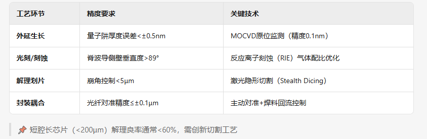不过单模芯片的制造也面临其他生产步骤的工艺难度,从外延、到光刻、到化片及后期的封装耦合。
