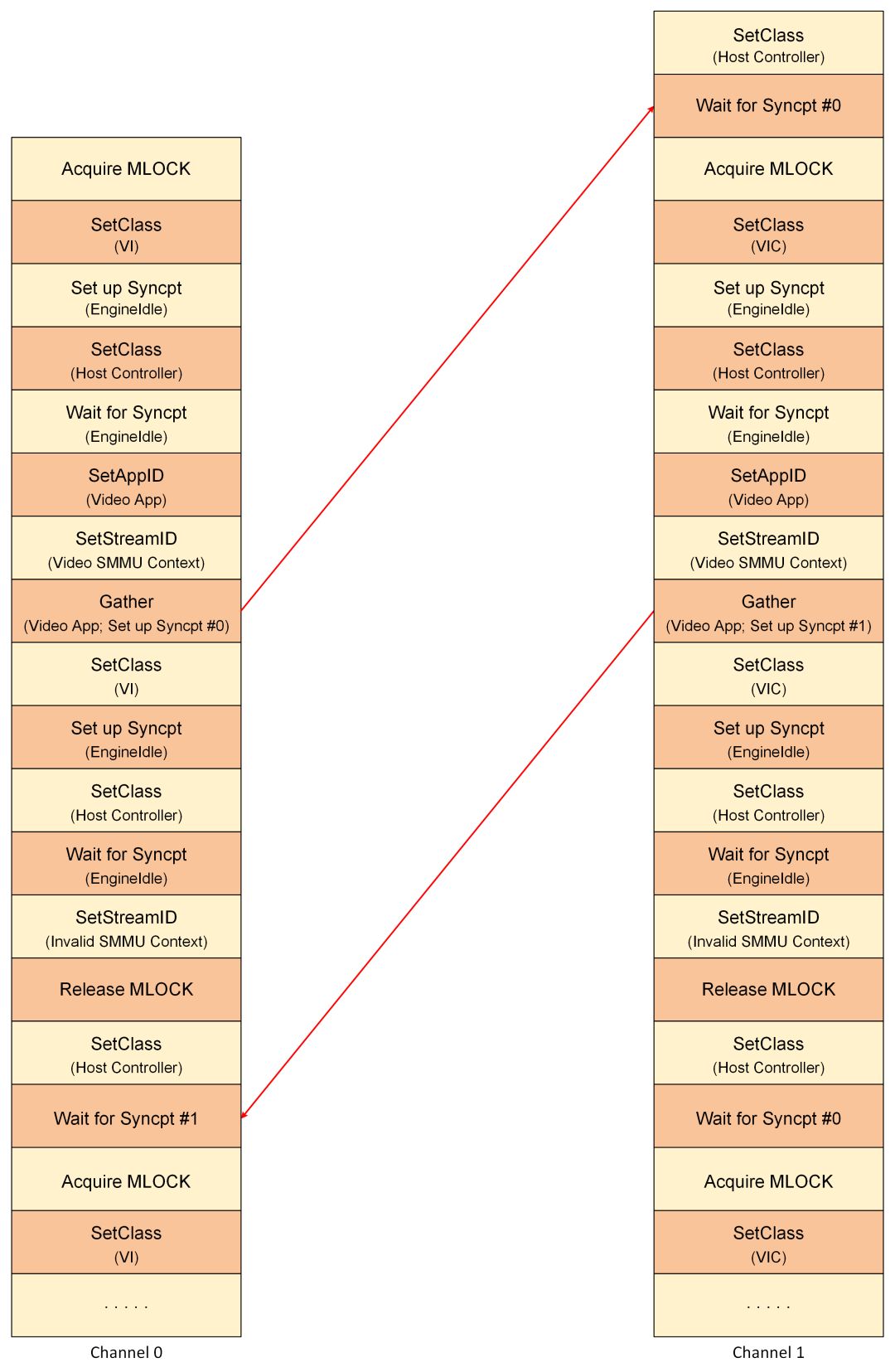 Host1x使用同步点 (Sync Points) 的硬件机制,利用硬件计数器和中断实现以下功能: