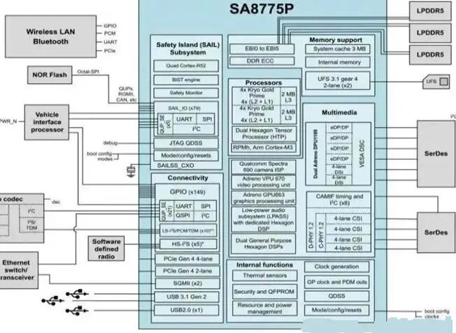 中央计算平台soc 需要CPU集群,GPU/NPU/ISP/VPU/DPU/DSP/安全岛/内存/HSM/高低速接口/传感器接口等