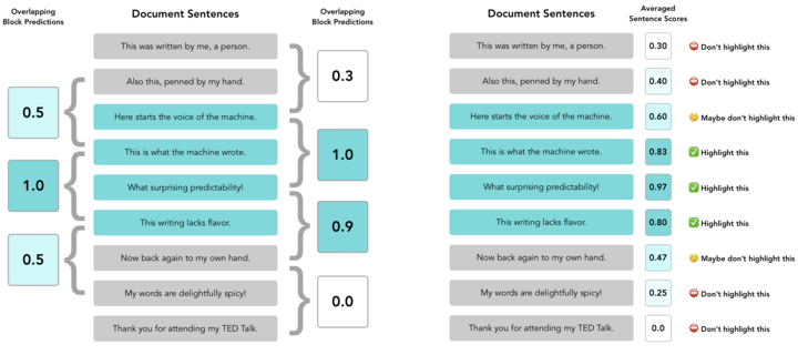最后算所有句子的平均分数,得出哪些内容像AI。