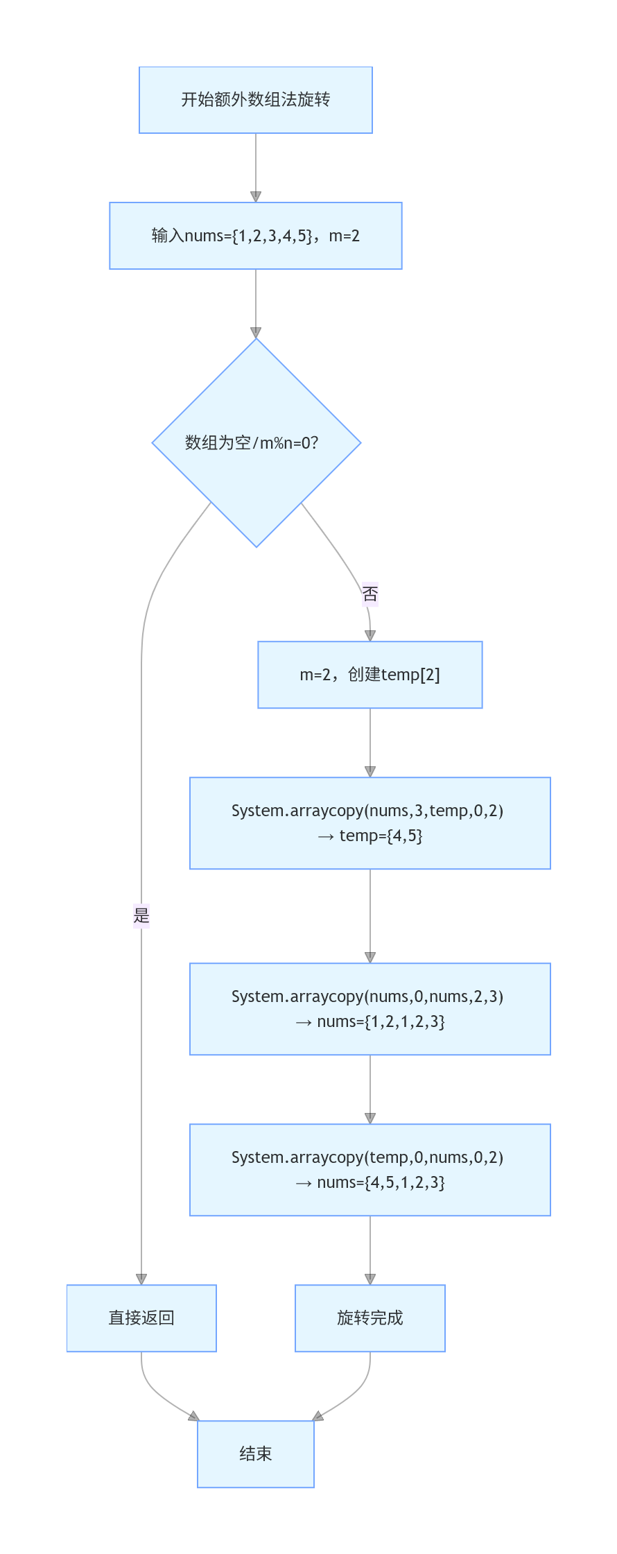 System.arraycopy(nums, n - m, temp, 0, m); // 复制最后m个元素到临时数组