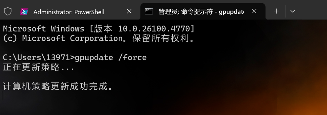 4右键点击「开始」菜单,选择「终端管理员」,执行gpupdate /force命令强制刷新组策略;或者重启电脑以应用配置。