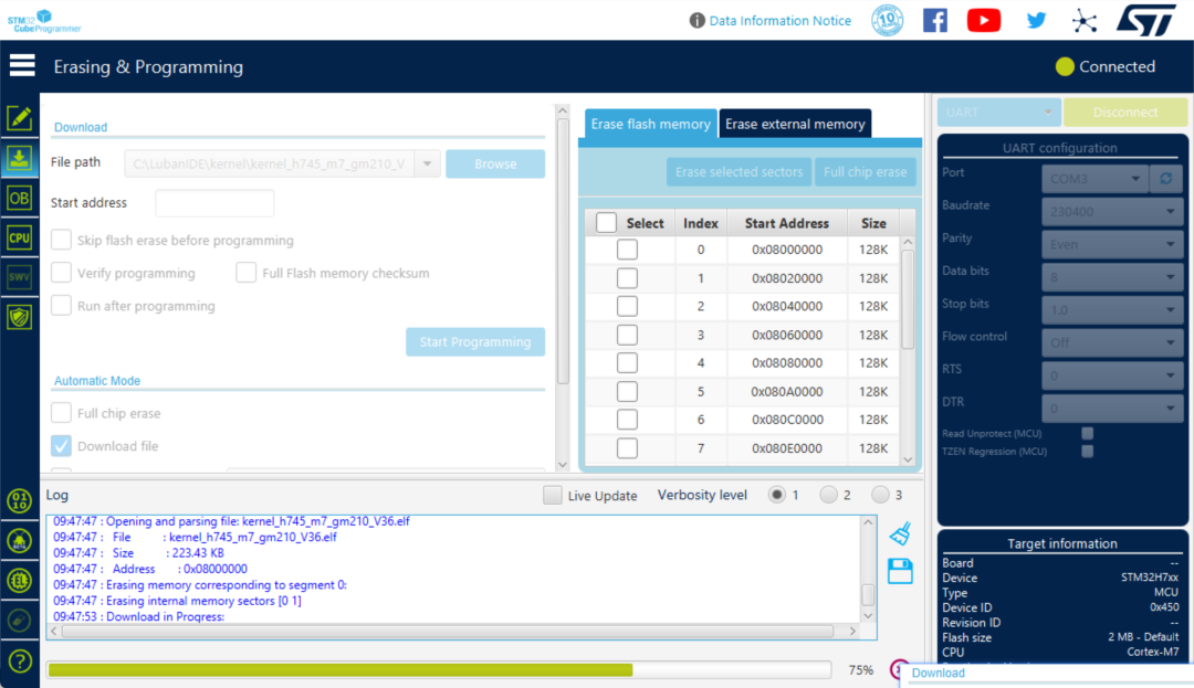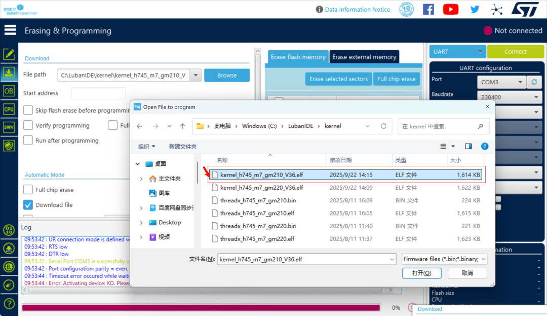 在 STM32CubeProgrammer 界面,点击左侧的UART图标。