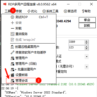 RDP多用户远程桌面配置工具V8 --新增 会话管理
