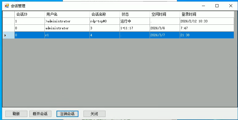 :会话管理窗口现在可以显示完整的会话信息,包括用户名、会话名称、会话ID、状态、空闲时间和登录时间
