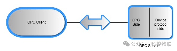 任何OPC架构的基石都由两个主要的软件组件组成:OPC客户端和OPC服务器。OPC服务器是一个软件,它可以从一端讲OPC,从另一端讲不同的协议。OPC服务器的OPC端可以与任何支持相同OPC风格的OPC客户端进行通信。
