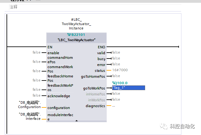 当执行器完成向工作位置或home位置移动时,各自的输出被复位(FALSE)。这是为了控制执行器,不需要额外的力量,一旦他们到达他们的最终位置。