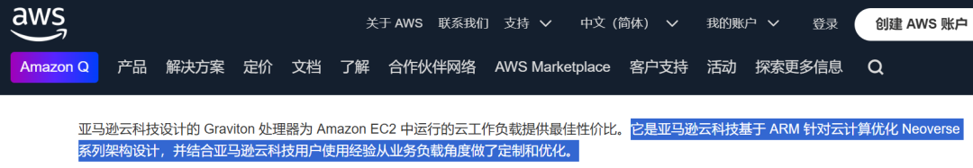 亚马逊云科技也在其官网上对于Graviton 处理器介绍中指出,“它(Graviton处理器)是亚马逊云科技基于Arm针对云计算优化 Neoverse(Arm面向服务器/数据中心端的IP核) 系列架构设计,并结合亚马逊云科技用户使用经验从业务负载角度做了定制和优化。”