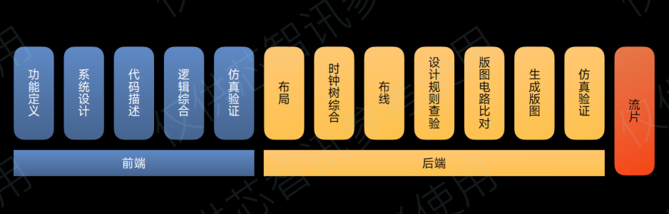 这里有必要介绍一下一款芯片的设计流程,主要可以分为前端设计和后端设计两个部分。