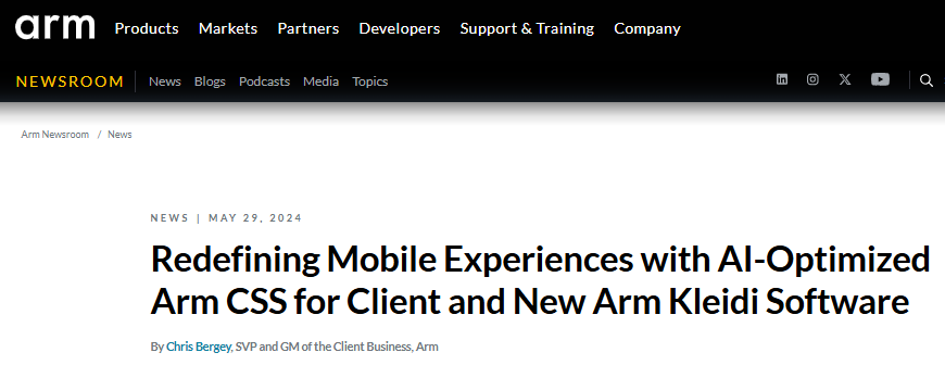 Arm的Neoverse CSS解决方案在服务器市场获得成功之后,在2024年5月底,Arm正式发布了首款面向智能手机和PC等终端产品的 Arm 计算子系统 —— Arm CSS for Client。