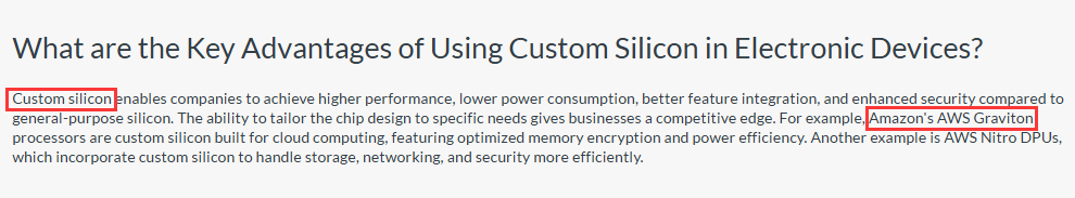 此外,与通用的标准芯片相比,“Custom Silicon”能够帮助企业实现更高的性能、更低的功耗、更佳的功能集成度和更强的安全性。能够根据特定需求定制芯片设计,为企业带来竞争优势。