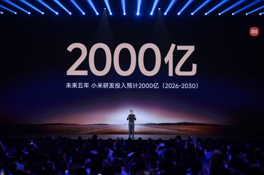 一系列成就背后,是小米创业十五年来始终坚持技术为本,持续深耕底层核心技术。发布会上雷军重申小米将继续加大研发投入:未来五年(2026-2030)在核心技术领域再投2000亿元。