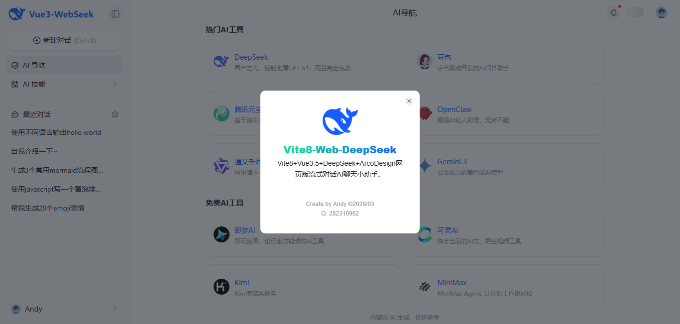 2026正式版vite8.0+vue3+arco+pinia3对接deepseek打造本地web网页版ai对答模板。