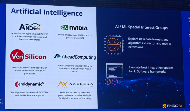AI领域的应用和部署也是RISC-V的主要阵地,英伟达在2024年的时候,基于RISC-V的GPU的出货量就超过了10亿颗(英伟达GPU依赖CUDA内核,但由RISC-V内核控制);中国上海的芯源也提供了基于RISC-V架构的一些面向AI的IP。