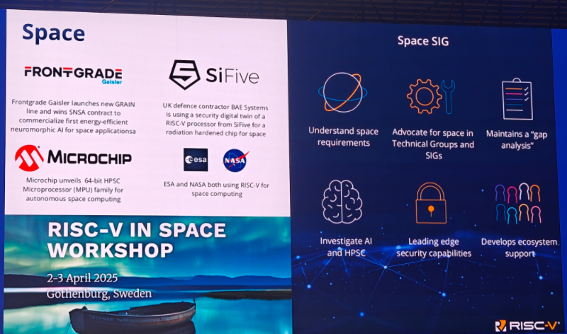 在太空领域,几个月前中,瑞典召开了一个RISC-V研讨会,当时各位演讲者都有一个基于RISC-V的新项目的落地。比如说登月或者是和卫星相关的一些太空计划。