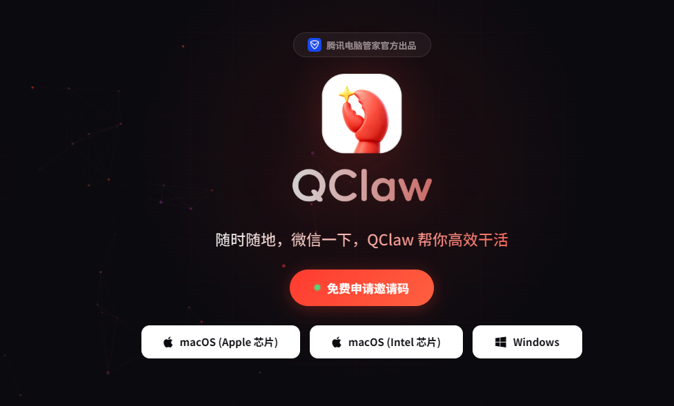 申请地址有时会更新,建议直接上官网点申请最稳。如果官网链接变了,搜索“QClaw 邀请码申请”也能找到最新腾讯问卷。