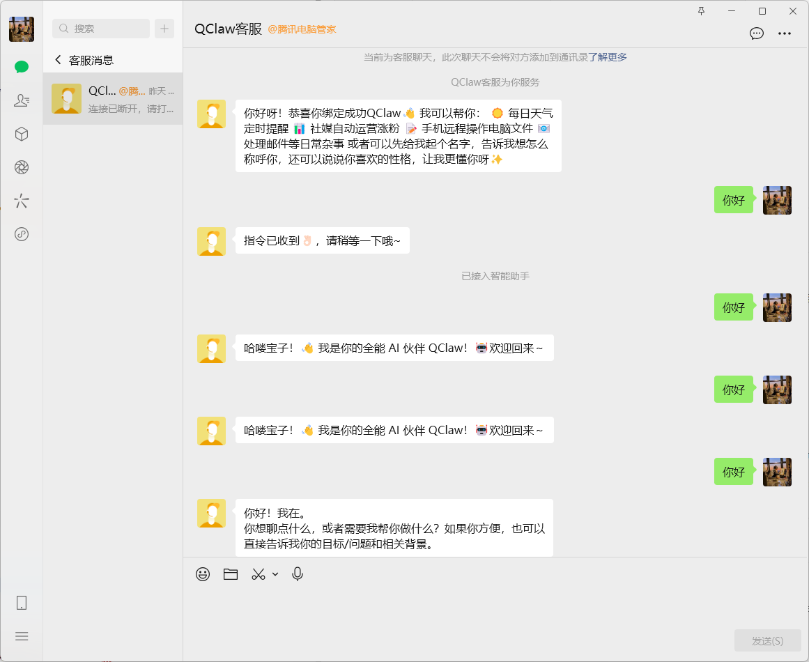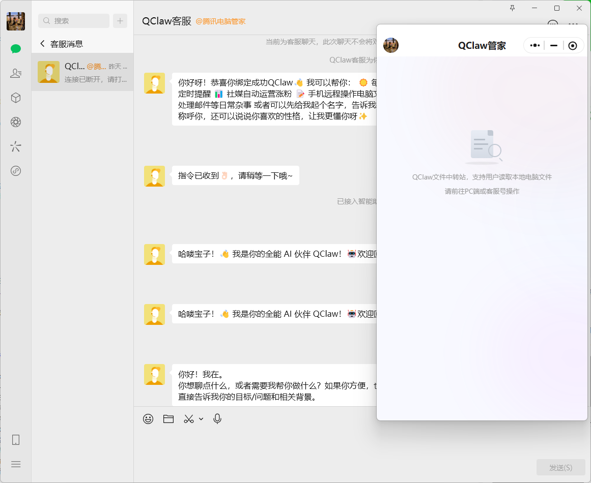 QClaw 早期以内测形式出现时,交互入口主要依赖微信客服号。