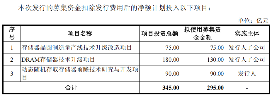 长鑫科技本次科创板IPO拟募集资金高达295亿元,主要用于存储器晶圆制造量产线技术升级改造项目、DRAM存储器技术升级项目、动态随机存取存储器前瞻技术研究与开发项目。