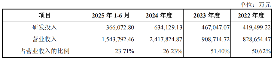 长鑫科技高度重视核心技术的自主研发。招股书显示,2022年至2025年上半年,长鑫科技累计研发投入为188.67亿元,占累计营业收入的33.11%,其中2024年研发投入63.41亿元,同比2023年增长35.77%。