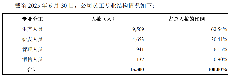 研发团队方面,截至2025年6月30日,长鑫科技拥有研发人员共计4653人,在总员工当中的占比为30.41%。