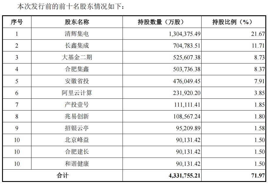 此外,安徽省投、阿里云、产投壹号、兆易创新、招银国际、北京峰益、合肥建长、和谐健康、腾讯、人保资本、建信金融、国调基金、君联资本、小米产投等均位列长鑫科技股东行列。