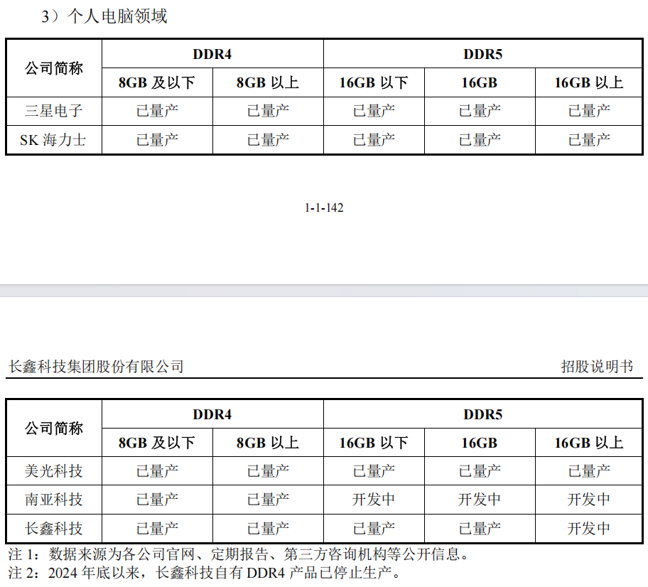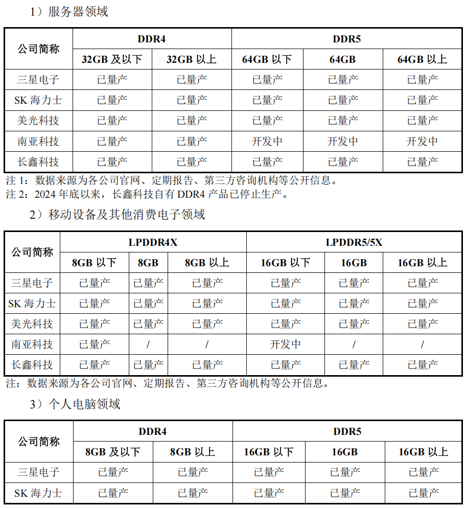 即便是与全球头部的三星、SK海力士、美光等DRAM大厂相比,长鑫科技的DRAM产品布局也已经持平。