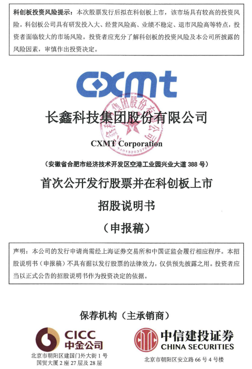 2025年12月30日晚间,长鑫科技集团股份有限公司(以下简称“长鑫科技”)正式向上海证券交易所递交招股书,拟在科创板挂牌上市。保荐机构微中金公司和中信建投。