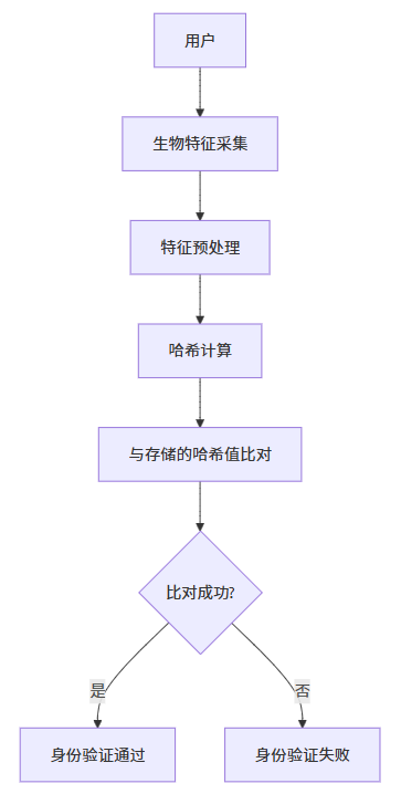 return np.array(biometric_data)匿名身份验证流程包括生物特征采集、哈希处理、比对验证等步骤。