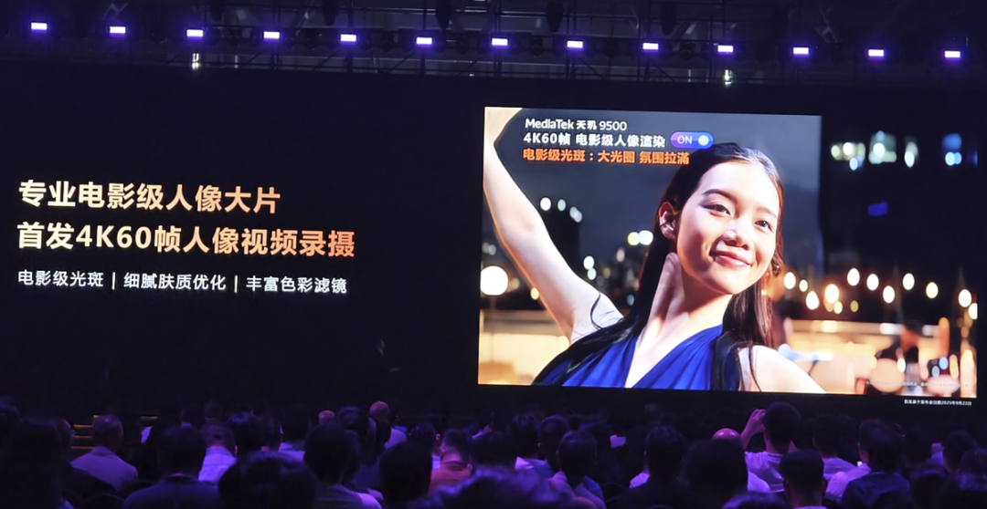 天玑 9500还率先支持4K 60 帧人像视频录制,涵盖电影级光斑、细腻肤质优化、丰富色彩滤镜等技术,让质感大片触手可及。
