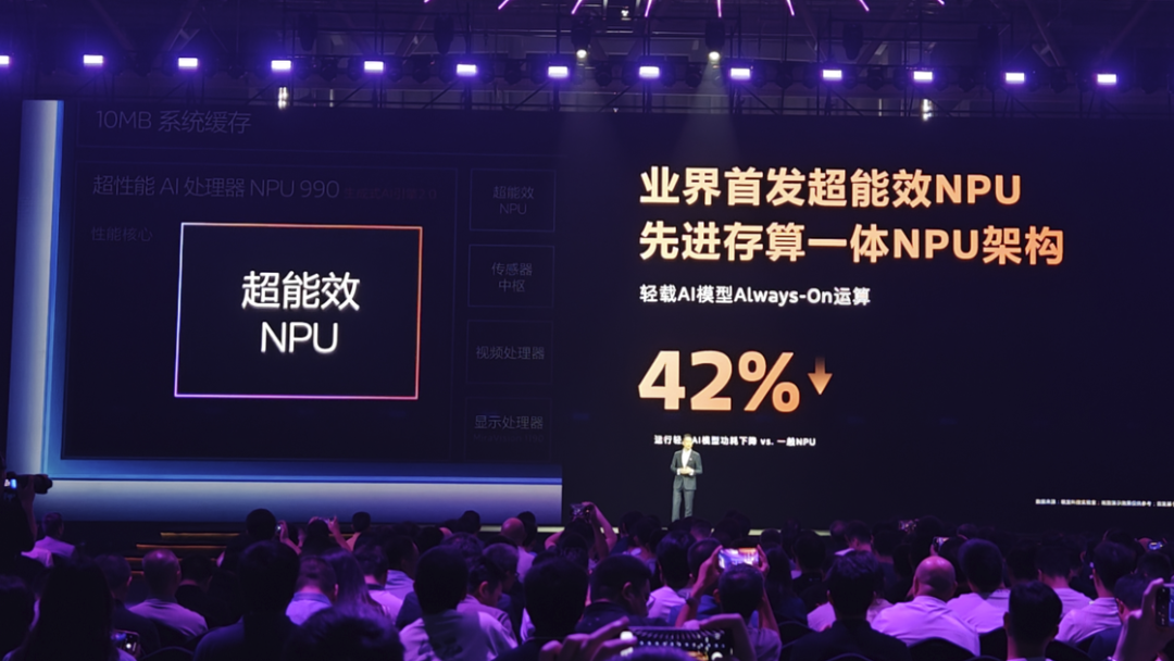 超能效NPU则兼顾让 AI 体验更持久的卓越能效,相较上一代在峰值性能下的功耗降低56%。